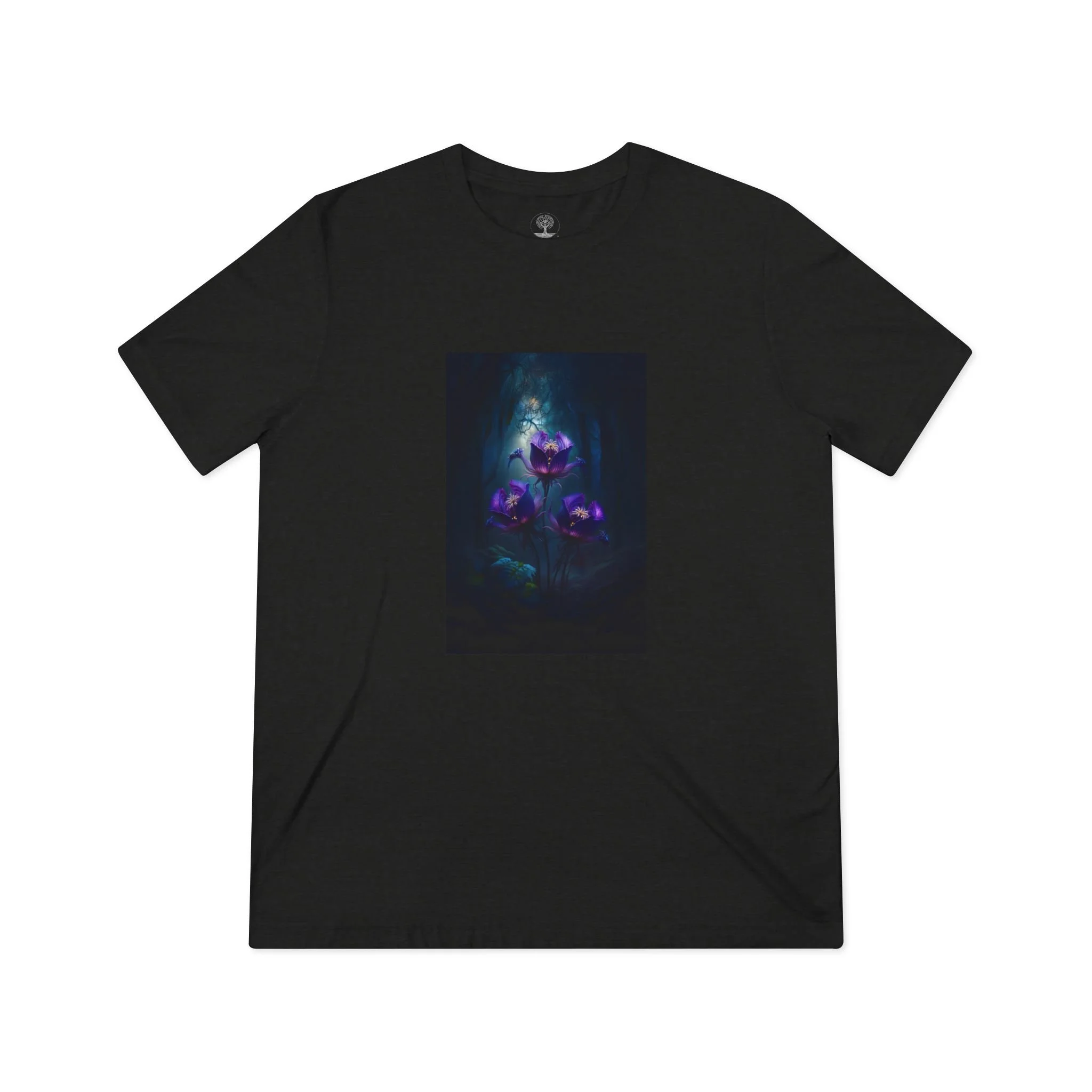 Purple Florals Full Bloom- Unisex Triblend Tee, Fantasy Lore, Nature, Creatures