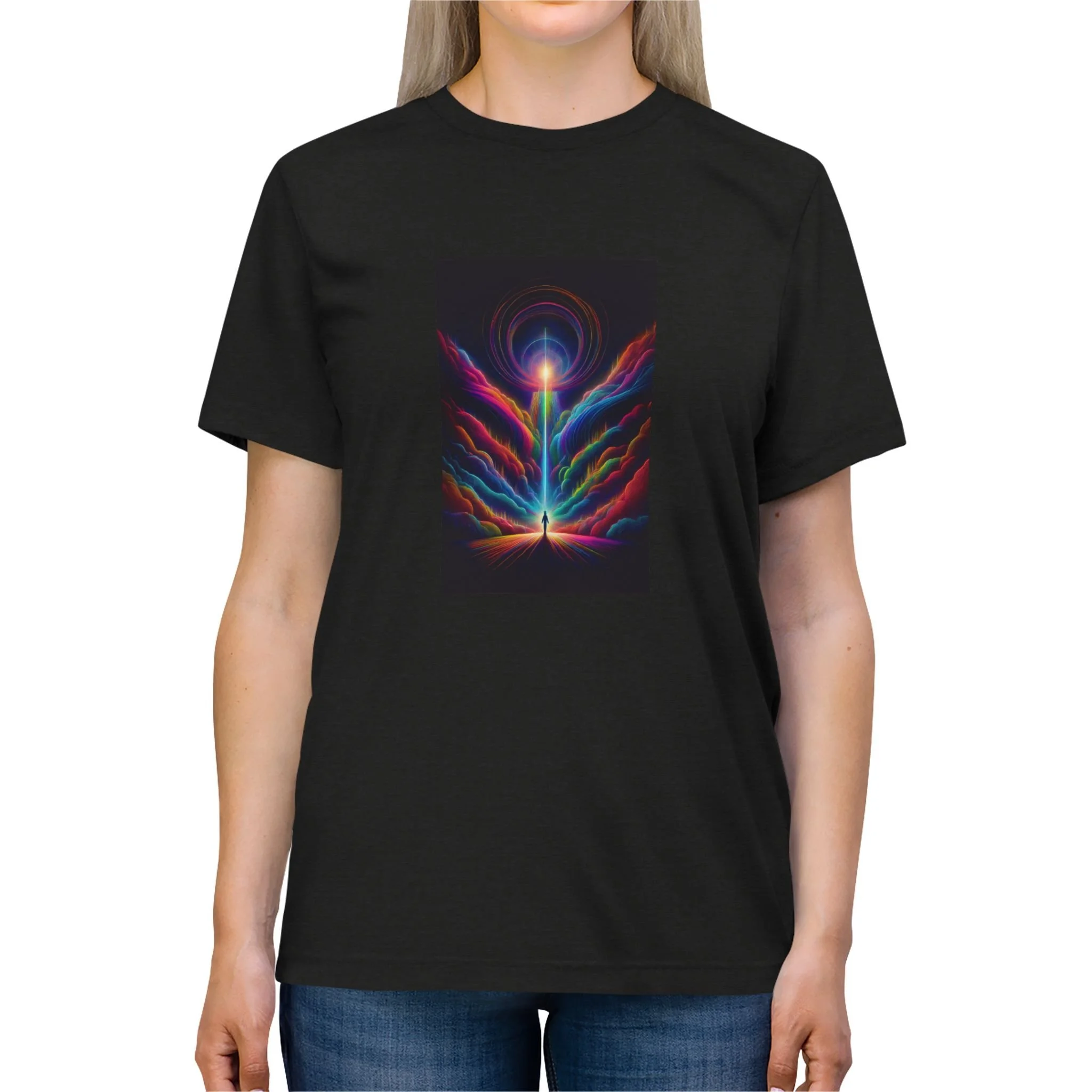 Store › Transcend to Rainbow 1- Regular Size- Unisex Triblend Tee- Fantasy Lover, Image 1 of 4 Image 2 of 4 Image 3 of 4 Image 4 of 4 Transcend to Rainbow 1- Regular Size- Unisex Triblend Tee- Fantasy Lover, $24.99 AI Generated. Human Inspired. Color: Select Color Black Heather Size: Select Size S M L XL Add To Cart Added! AI Generated. Human Inspired.
